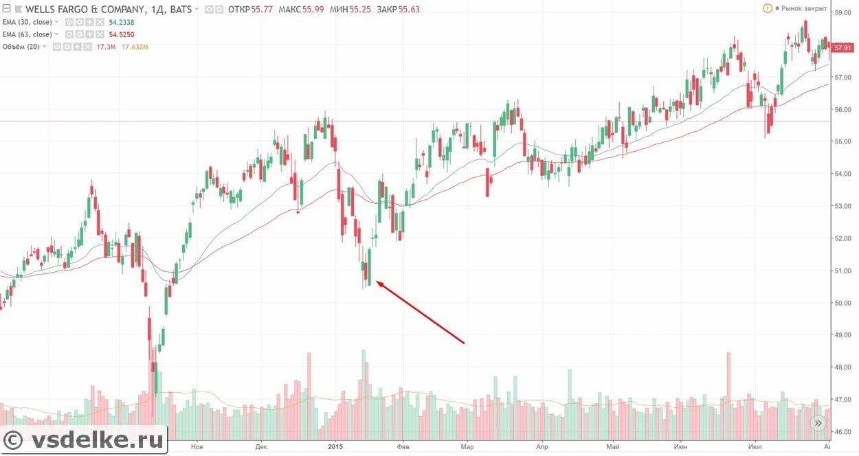 Фигура бычье поглощение на графике Wells Fargo (16 января 2015):